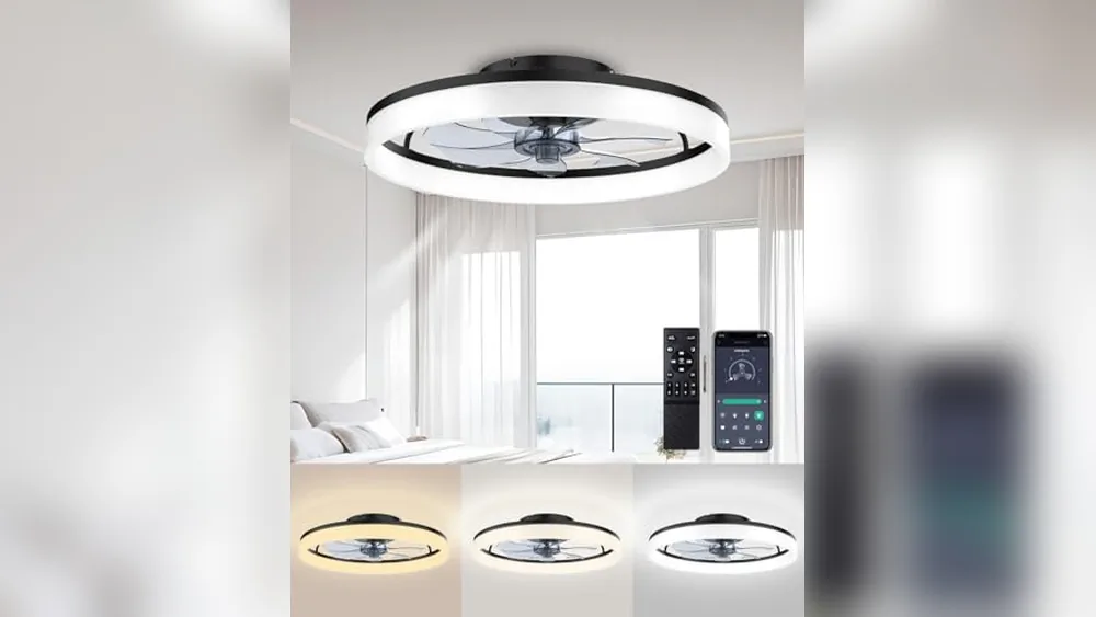 This ceiling fan combines modern design with practical lighting solutions, ideal for bedrooms or smaller rooms with low ceilings. It addresses the need for a quiet, space-saving fan with dimmable LED lighting that ranges from warm to cool tones, letting you adjust the atmosphere with ease.