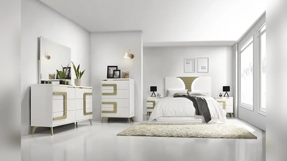 Using this set feels like bringing a touch of luxury and calm into your bedroom with its white and gold finish that brightens the space. Assembly is straightforward, and the solid wood construction provides confidence in long-term use, while the ample storage keeps your bedroom organized and clutter-free.