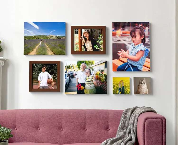 Multiple canvas sizes of the same family photo create a cohesive gallery wall look—easy to achieve with collage or split options from these providers.