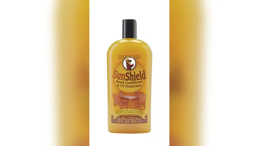 Howard SunShield Beeswax Polish is a wood care product designed to prevent drying and fading caused by sun, temperature changes, and moisture. It works well on outdoor furniture made of teak and tropical hardwoods, helping to maintain their finish and appearance over time.